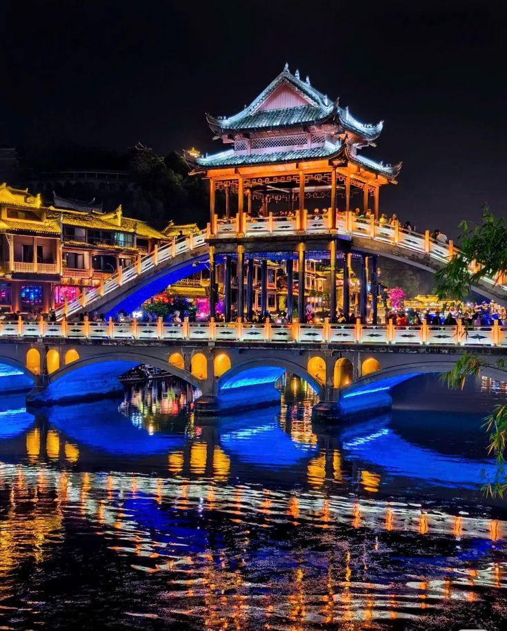 Phượng Hoàng về đêm đẹp theo một cách rất khác, đầy lung linh và vô cùng huyền bí, những kiến trúc cổ được thắp sáng bởi những ánh đèn màu ấm in hình lên dòng sông Đà Giang đẹp như một bức họa màu nước của người họa sĩ …