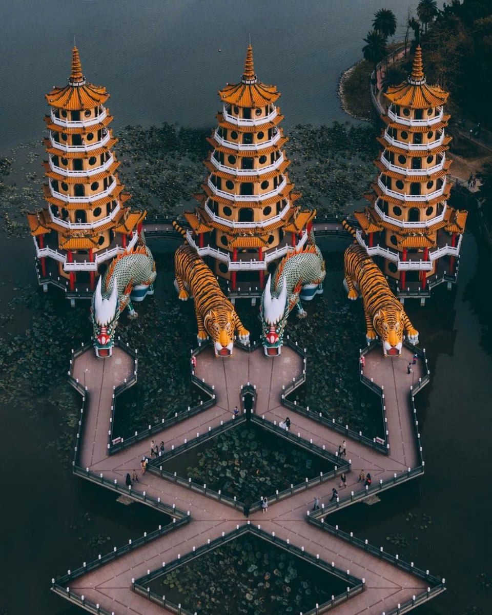 Tại đây có Tháp Long Hổ: là một trong những ngôi chùa có kiến trúc đẹp nhất ở Đài Loan. Ngôi chùa có hai tòa tháp chính là tháp Long và tháp Hổ, mỗi tháp cao 7 tầng, cửa ra vào được thiết kế độc đáo với một bên là Rồng, một bên là Hổ với ngụ ý vào Rồng ra Hổ tượng trưng cho cát tường, thịnh vượng và may mắn.