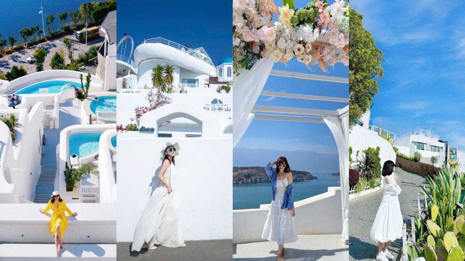 Thăm quan Santorini – phiên bản “ Địa Trung Hải thu nhỏ”, view hướng ra hồ Nhĩ Hải ( tự túc đồ uống nếu muốn checkin view toàn cảnh trên cao nhà hàng).