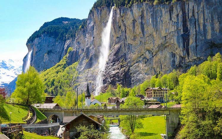 Lauterbrunnen được xem là một trong những thung lũng đẹp nhất châu Âu. Nơi đây nổi tiếng với hơn 70 thác nước chảy từ các vách đá cao. Khung cảnh thung lũng xanh mướt kết hợp với thác nước trắng xóa tạo nên bức tranh thiên nhiên rất ngoạn mục. Mùa hè là thời điểm đẹp nhất để khám phá Lauterbrunnen. Du khách có thể đi bộ hoặc đạp xe quanh thung lũng. Đây là điểm dừng rất được yêu thích trong tour du lịch châu Âu.