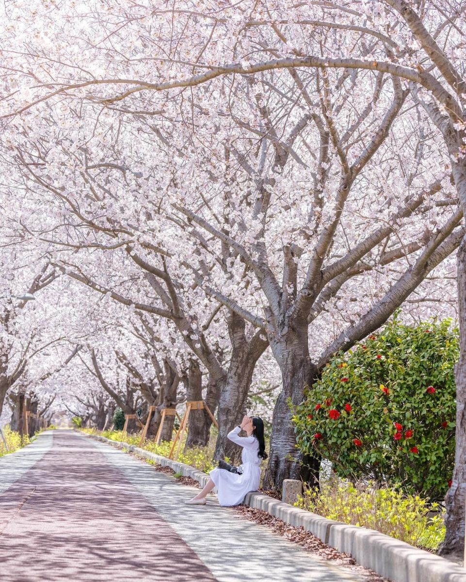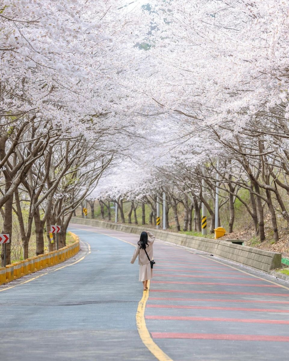 Nơi đây có con đường hoa anh đào dài 12 km dài nhất Hàn Quốc. Địa điểm này hàng năm thu hút rất đông khách du lịch tới tham quan. Vào cuối mùa hoa anh đòa, hoa cải dầu vàng rực rỡ cùng khoe rắc.