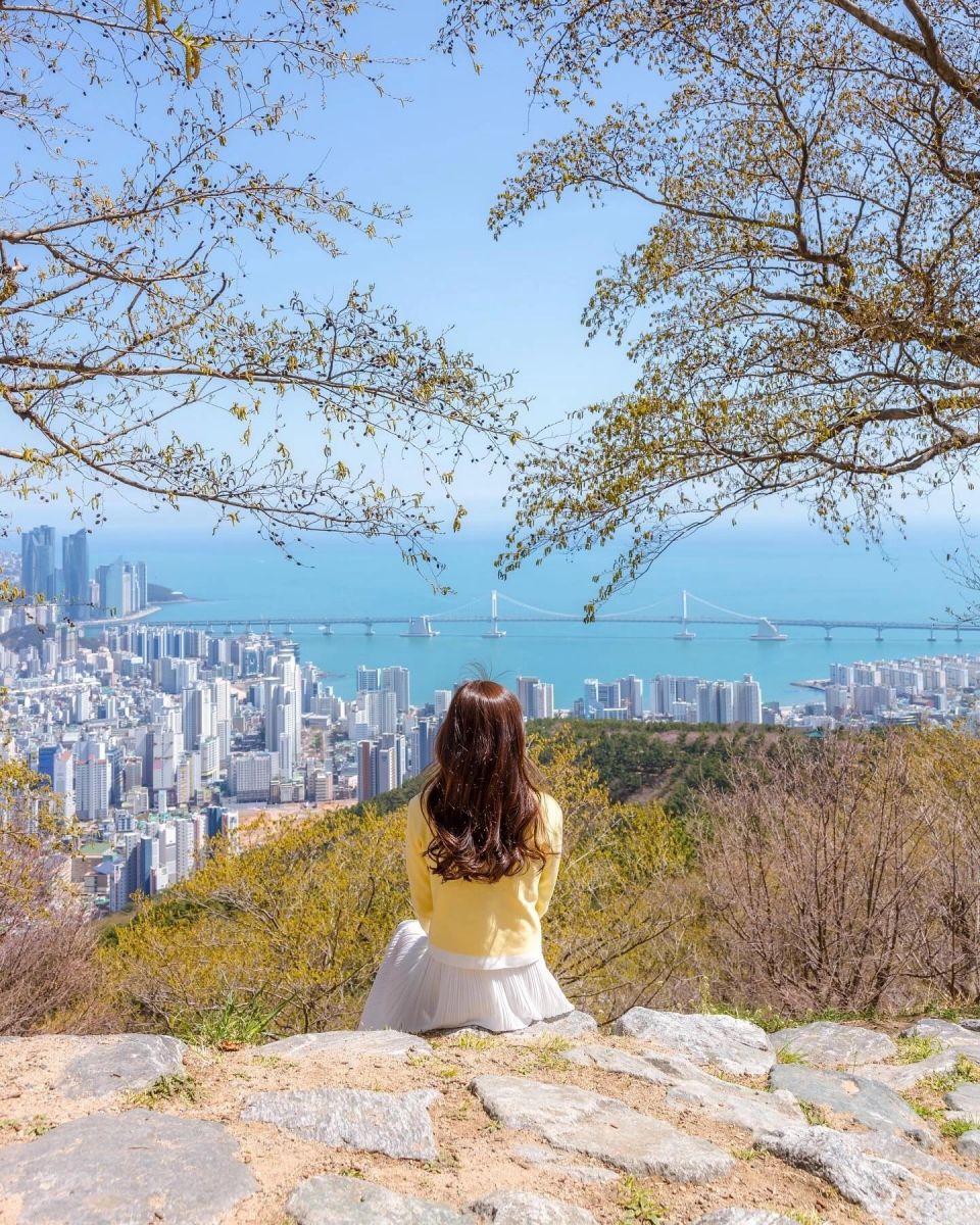 Những con đường dẫn lên đài thiên văn đều trồng nhiều hoa anh đào. Đài thiên văn Hwangnyeongsan nằm trên một ngọn núi nằm ở trung tâm thành phố Busan. Bạn có thể nhìn thấy cầu Gwangan từ phía xa ở một bên, biển Haeundae sôi động và trung tâm thành phố ở phía bên kia. Đây là một nơi tuyệt vời để ngắm nhìn biển Busan.