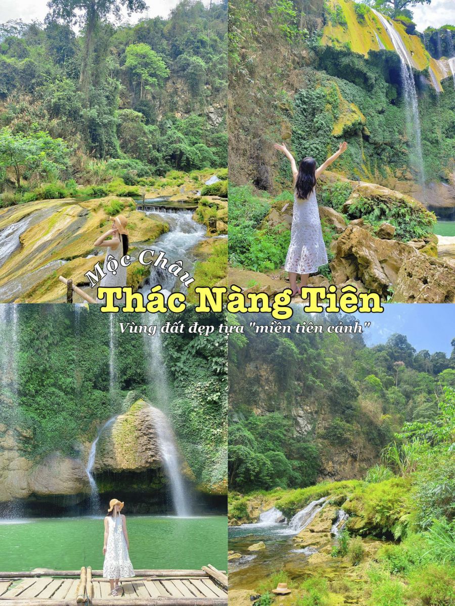 Chỉ cách dòng thác Chiềng Khoa tầm 2km có một dòng thác khác cũng đang được mọi người yêu thích đó là Thác Nàng Tiên. Thác gồm 3 tầng dòng thác trải dài hơn 1km đường rừng, mỗi tầng đều có một vẻ đẹp đặc trưng riêng. Nhờ khung cảnh nguyên sơ và tự nhiên nên Thác luôn được các bạn trẻ mê khám phá ghé.