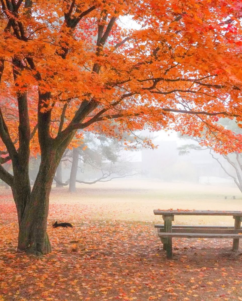 Picnic dưới tán cây đỏ rực, mở một tấm khăn kẻ, thưởng thức hoa quả và ngắm lá rơi, cảm giác như lạc vào một buổi chiều châu Âu.