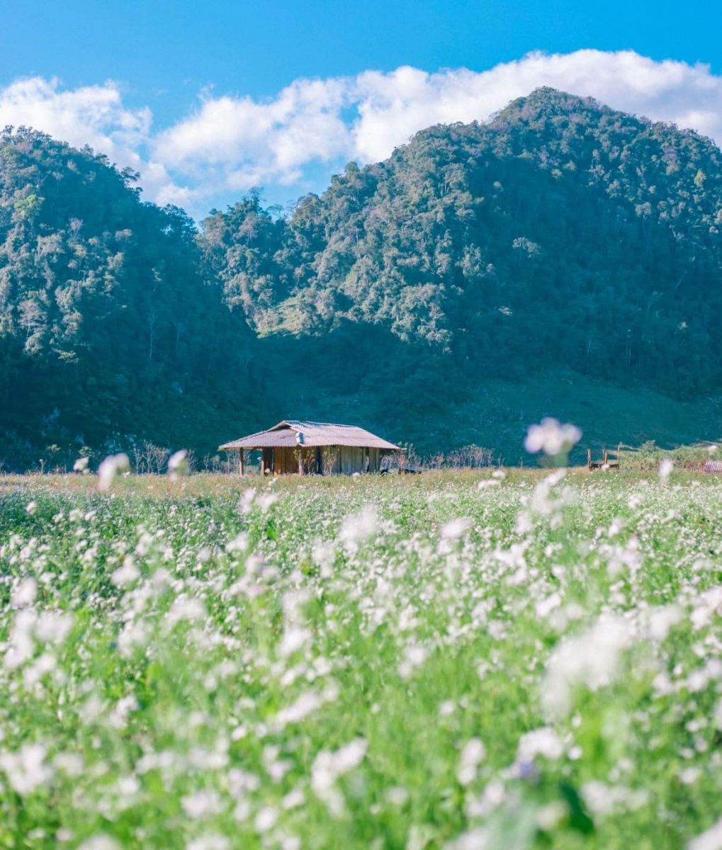 - Mộc Châu: Mùa hoa cải trắng nở rộ khắp cánh đồng.