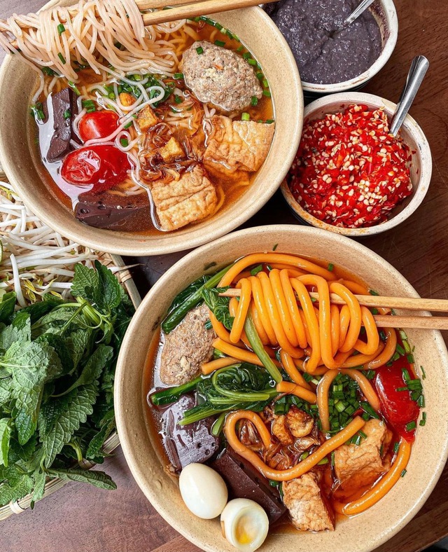 Món đặc sản dân dã, có màu đỏ bắt mắt từ dầu điều, ăn kèm với giò heo, trứng cút, rau sống, khiến ai ăn một lần cũng nhớ mãi.