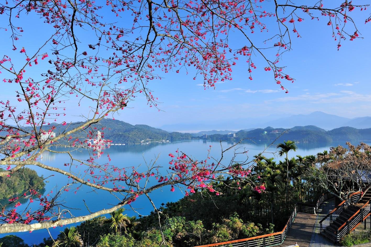 Hồ Nhật Nguyệt không chỉ là thắng cảnh nổi tiếng nhất Đài Loan mà còn là một trong những địa điểm ngắm hoa anh đào rất được yêu thích. Dọc theo các con đường ven hồ và khu vực đền Văn Võ, hàng cây anh đào nở rộ phản chiếu xuống mặt nước xanh ngọc, tạo nên khung cảnh vừa thanh bình vừa lãng mạn.