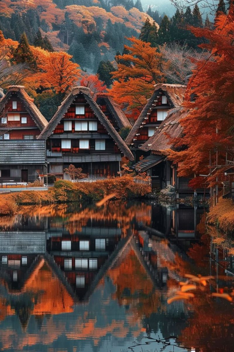 Thu (tháng 9–11 | khoảng 8–20°C): Lá phong chuyển vàng đỏ rực rỡ, trời trong, khí hậu dễ chịu. Đây là mùa được nhiếp ảnh gia yêu thích nhất khi ánh nắng vàng phủ lên mái tranh cổ.