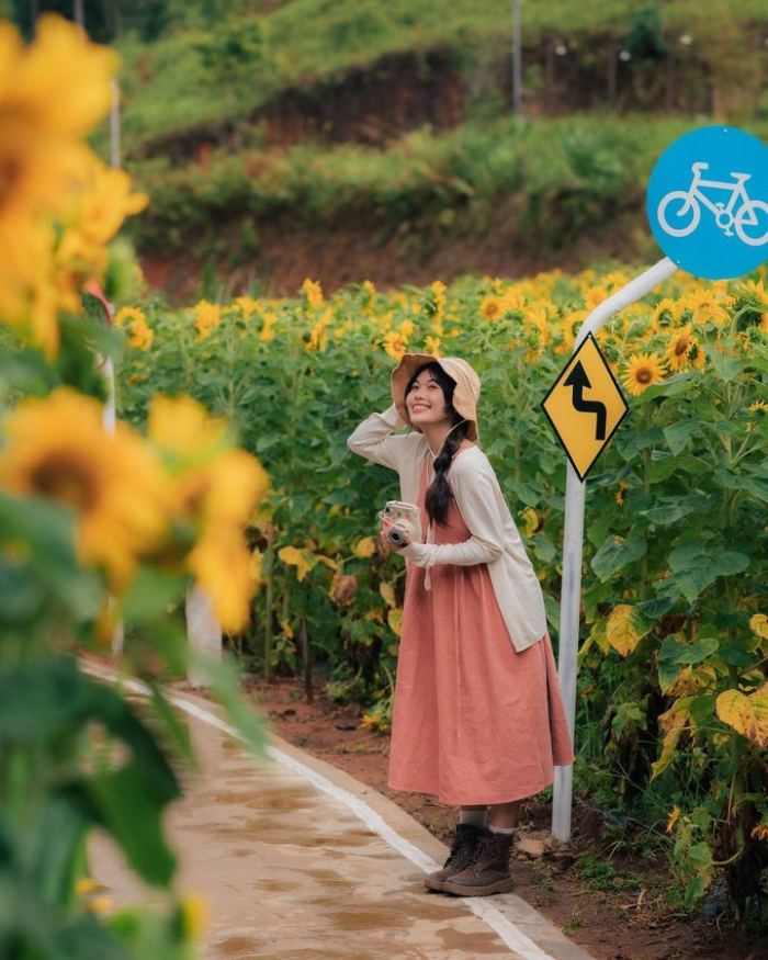 Hoa hướng dương cũng là một điểm nhấn đặc biệt vào cuối năm tại Đà Lạt. Những vườn hoa rực rỡ mọc tại làng hoa Vạn Thành hay nông trại Đà Lạt Milk ở Đơn Dương sẽ khiến bạn ngỡ ngàng trước vẻ đẹp kiêu sa và tỏa sáng của loài hoa này. Đặc biệt, thời điểm tháng 11, 12 là lúc hoa nở đẹp nhất, bạn đừng bỏ lỡ cơ hội chiêm ngưỡng nhé!