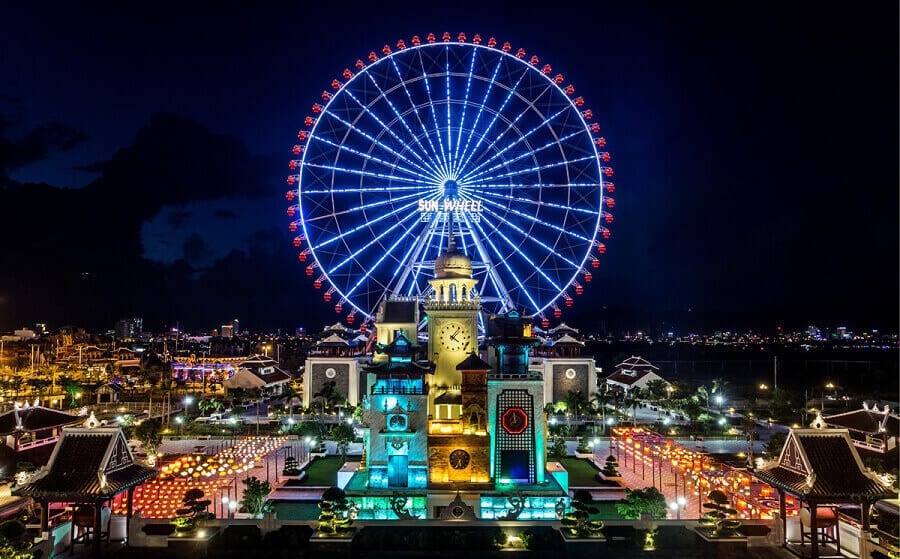 Tối: Ăn tối nhà hàng. Trãi nghiệm cảm giác với Vòng quay Mặt trời SUN WHEEL – Top 10 vòng quay cao nhất Thế Giới, chiêm ngưởng vẻ đẹp Đà Thành về đêm rực rỡ ánh đèn. (Vé Sun Wheel tự túc).