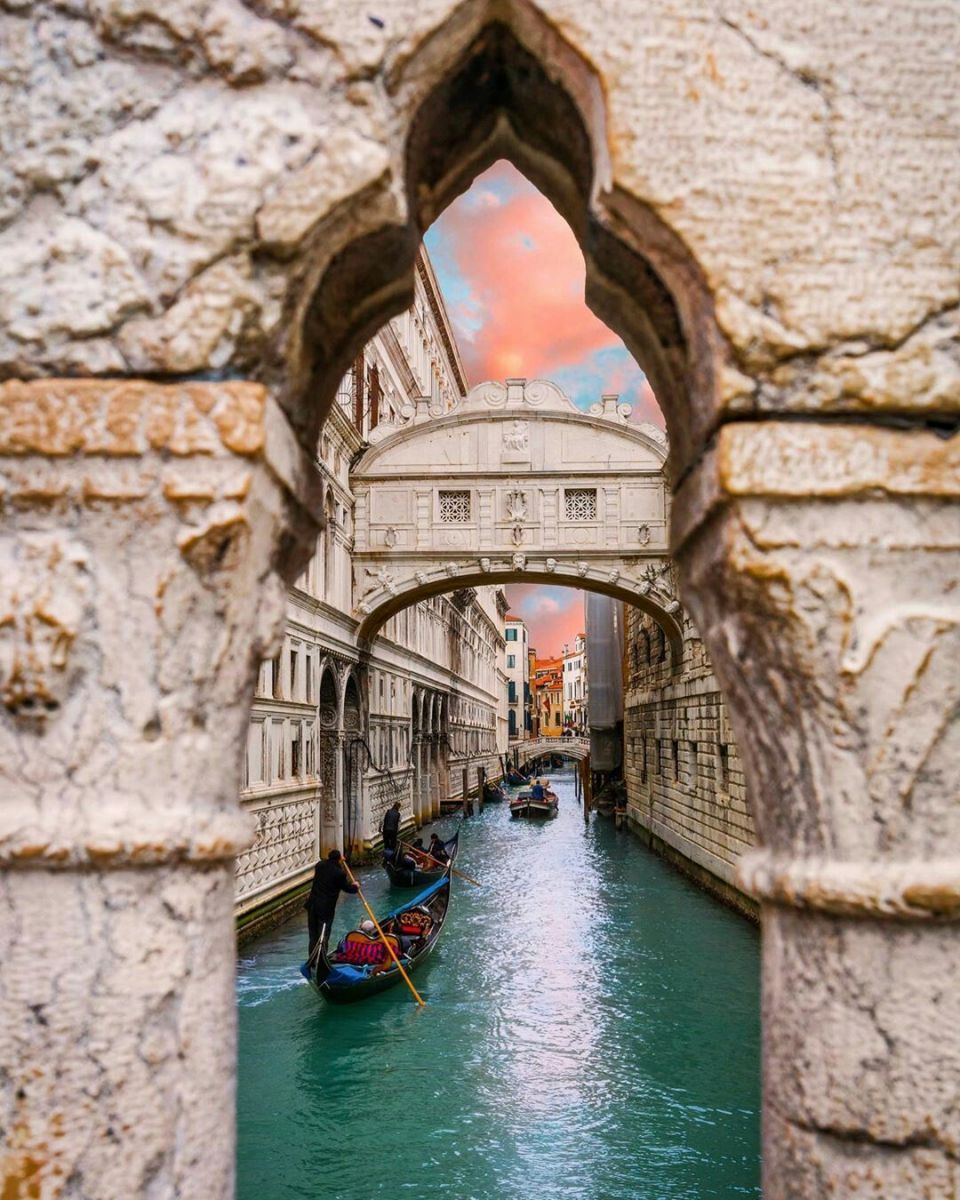 Thăm quan cây cầu Bridge of Sighs – cầu than thở có tên gốc Ponte dei Sospiri, là một trong những cây cầu nổi tiếng nhất thành Venice, Italy. Ponte dei Sospiri được thiết kế cong mỹ miều, làm từ đá vôi trắng và có các cửa sổ hình chữ nhật bé xíu phủ lưới bên ngoài. Trong thế kỷ 17, nhiệm vụ của cây cầu này là dẫn tù nhân từ phòng thẩm vấn ở cung điện Doge tới phòng giam ở nhà tù Prigioni.