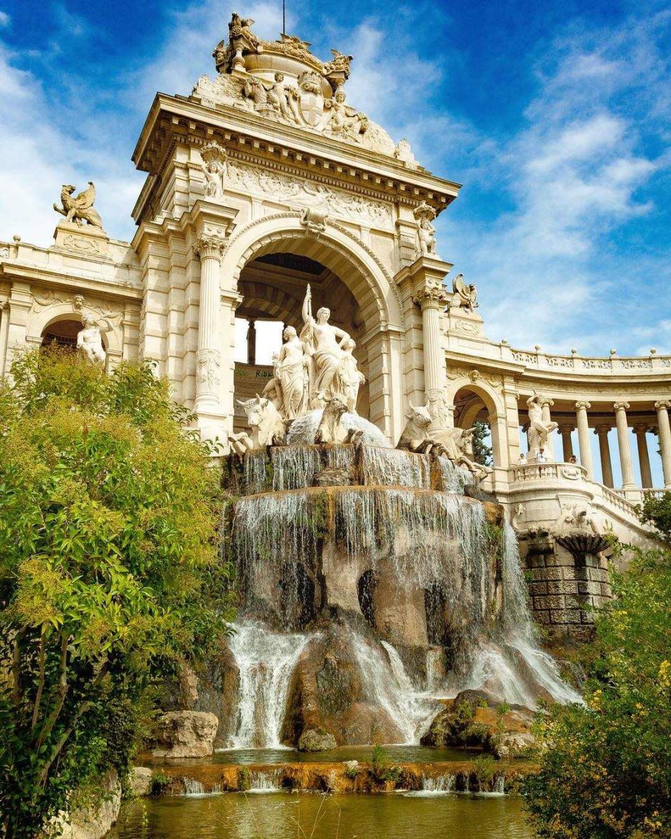 Lâu đài nước Palais Longchamps - Có tên là lâu đài nước vì vào trước thế kỷ 19, vùng đất Marseille dù được đại dương bao quanh nhưng lại là nơi thiếu nước ngọt một cách trầm trọng. Nên vào năm 1838, chính quyền đã quyết định đào một con kênh dẫn nước từ sông Durance về để cung cấp nước ngọt cho sinh hoạt của người dân. Chính vì lẽ đó, Palais Longchamps ra đời nhằm suy tôn nguồn nước - nguyên nhân của mọi sự sống. Lâu đài Palais Longchamps được xây dựng theo lối kiến trúc cổ điển theo hình bán nguyệt, ở chính giữa là đài phun nước được tô điểm bằng những bức tượng điêu khắc hình ảnh của 3 người phụ nữ ở vị trí cao nhất, bên dưới là những chú bò tót trong phong thái sẵn sàng chiến đấu cực độc đáo và ấn tượng. Đúng như tên gọi và ý nghĩa khi xây dựng là tinh thần tôn vinh nguồn nước, quanh lâu đài nước Palais Longchamps được thiết kế rất nhiều vị trí cho nước chảy ra tạo nên một ấn tượng khó phai trong lòng du khách.
